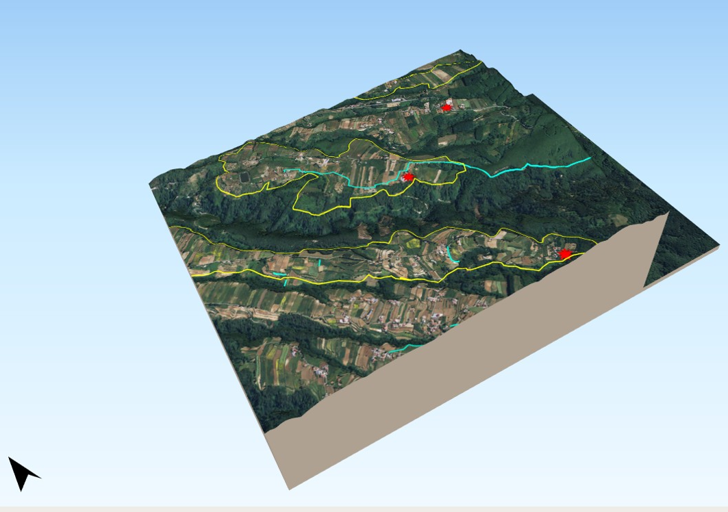 A Selvena l’attuale distribuzione della popolazione per nuclei e famiglie non sembra un evento recente, ma almeno evidente dal XVII secolo quando molte di queste famiglie sono già attestate nella documentazione (fig.1). E a ben vedere la prima menzione di Selvena nel IX secolo con un fundus, casale e vicus sembra proprio echeggiare un’antichissima distribuzione della popolazione funzionale forse ad una gestione ottimale delle risorse che in questo contesto non sono solo agricole e silvo-pastorali (fig.2). Ai piedi del castello infatti è la più grande miniera europea di cinabro da cui si estrae il mercurio che fin dalla Protostoria era usato come colorante. Anche la rete della connettività mostra una sovrapposizione di lunga durata e in particolare un percorso che da Sovana giunge all’abbazia di San Salvatore al Monte Amiata (fig.3).