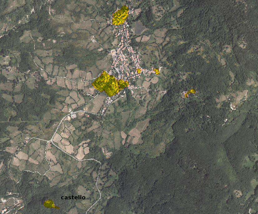 A Selvena l’attuale distribuzione della popolazione per nuclei e famiglie non sembra un evento recente, ma almeno evidente dal XVII secolo quando molte di queste famiglie sono già attestate nella documentazione (fig.1). E a ben vedere la prima menzione di Selvena nel IX secolo con un fundus, casale e vicus sembra proprio echeggiare un’antichissima distribuzione della popolazione funzionale forse ad una gestione ottimale delle risorse che in questo contesto non sono solo agricole e silvo-pastorali (fig.2). Ai piedi del castello infatti è la più grande miniera europea di cinabro da cui si estrae il mercurio che fin dalla Protostoria era usato come colorante. Anche la rete della connettività mostra una sovrapposizione di lunga durata e in particolare un percorso che da Sovana giunge all’abbazia di San Salvatore al Monte Amiata (fig.3).
