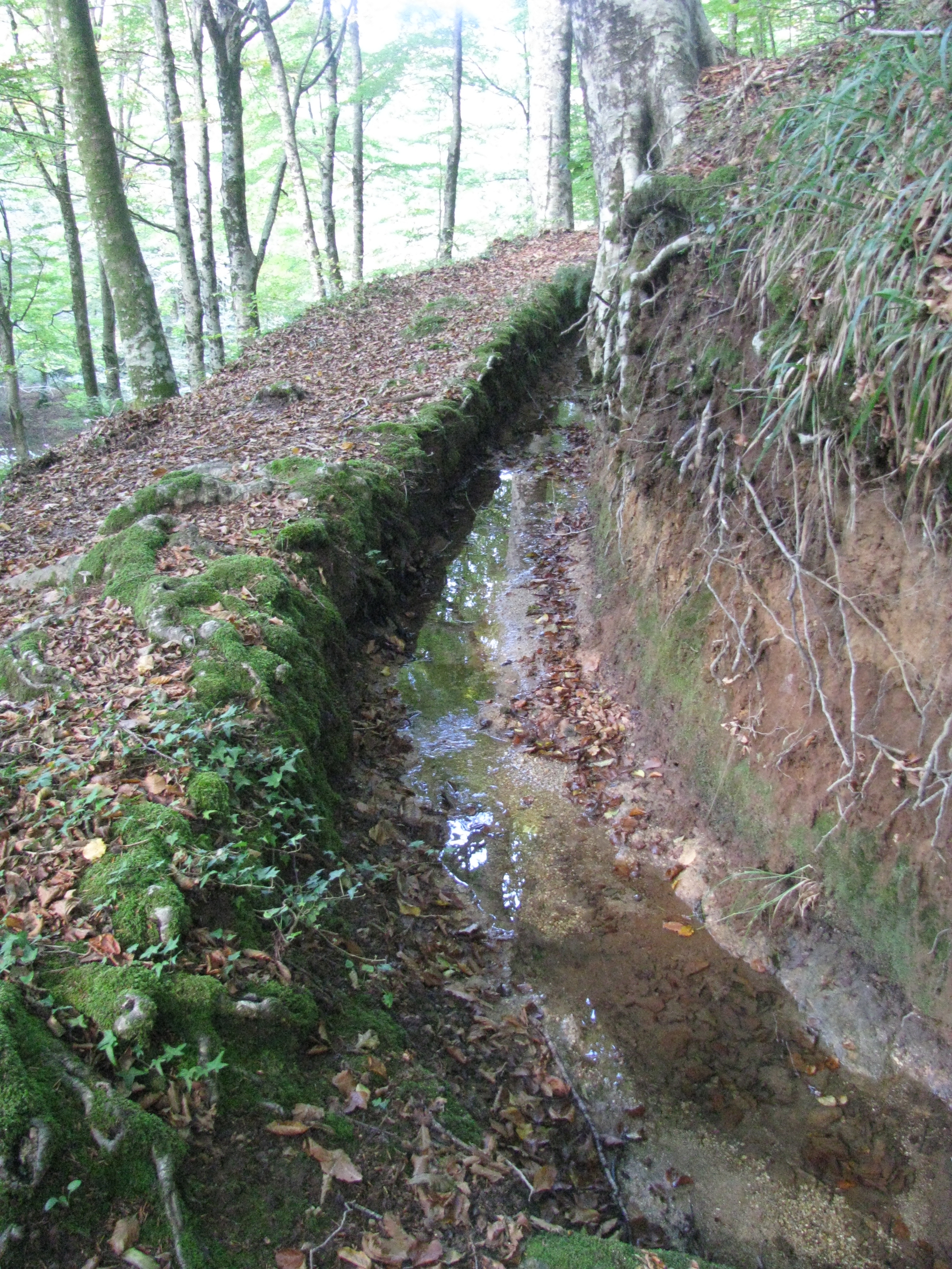 Ad Arena emerge come elemento di primario rilievo un sistema di gestione comunitario delle acque che partendo dalle sorgenti in quota oltre i 1000 m slm attraverso le “prise” (forse dal Francese prise d’eau), dei canali scavati nella terra che vengono gestiti dall’intera comunità di piccoli proprietari che ne fruisce a valle (fig.4). Ciascuno ha poi una derivazione privata per irrigare i propri terreni in estate per ortaggi. L’acqua viene conservata in grosse vasche anch’esse in terra che nel dialetto locale si chiamano gebbie (dall’arabo Jābiya che significa vasca – fig.5) e anche l’acquisto di un appezzamento di terra prevede il diritto di uso dell’acqua. Si tratta di un sistema ramificato che consentiva di irrigare i pianori e i terrazzi sottostanti per lasciare poi defluire l’acqua di nuovo nei torrenti che alimentavano numerosi mulini. Un sistema ancora tutto da studiare sia nella sua reale estensione che nella cronologia. Allo stesso modo anche la connettività che dal castello, centro di un vasto feudo in età moderna, si diparte in tutte le direzioni con ponti in pietra sembra avere una cronologia di lunghissima durata (fig.6).