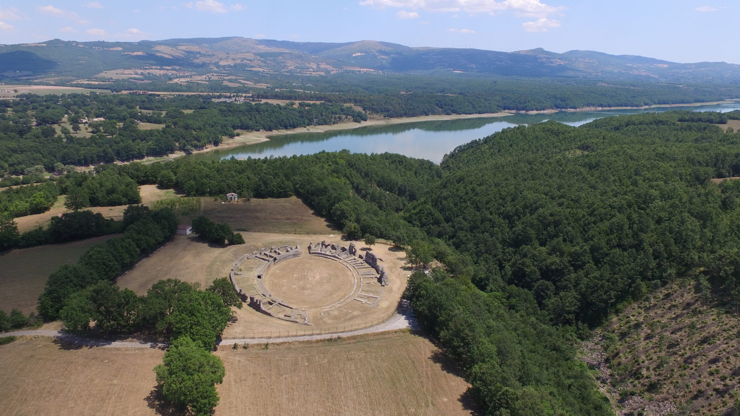 Immersi nel verde e circondati dalle catene montuose dell’Appennino lucano, in una straordinaria cornice paesaggistica sulle rive del Lago del Pertusillo, si ergono i resti di Grumentum, una delle maggiori città romane del sud Italia.