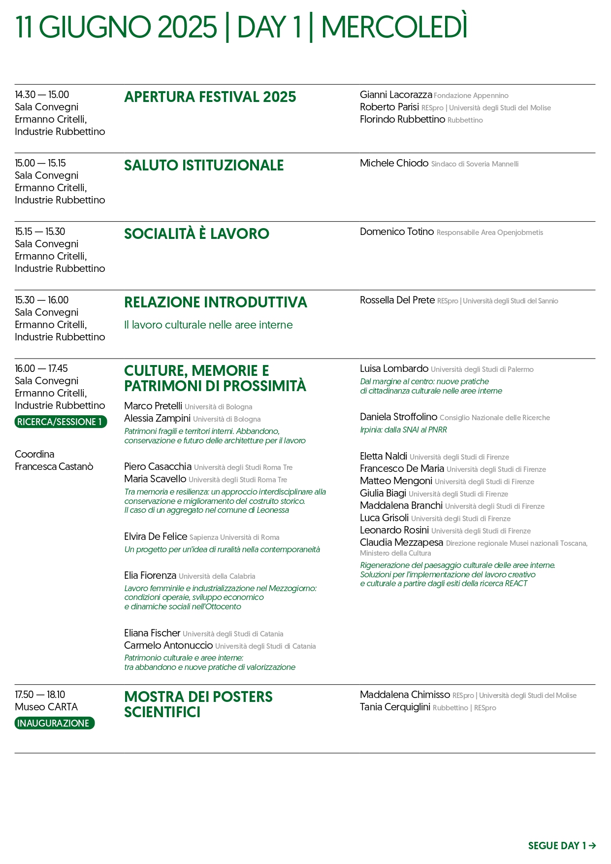 Il Festival del lavoro nelle aree interne è promosso da RESpro, la rete di storici per i paesaggi della produzione, da Fondazione Appennino e da Rubbettino.